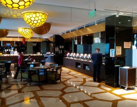 大同贵宾假日酒店们一层是自助西餐厅,早餐也在这里。整体感觉一般,晚餐时段快下班时,菜品供应不及时,员工似乎都很着急下班的样子。饭菜也一般。
