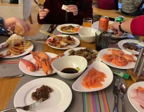 商圈中心的海鲜自助,价格不菲,但是也正是这样才保证了餐厅环境、服务和菜品的质量。50层的高楼视野广阔,情侣约会会非常罗曼蒂克哟~~服务员的整体素质也很nice,分装龙虾的外国友人好萌萌哒,我上去搭讪一下会不会提高英语口语呢~~