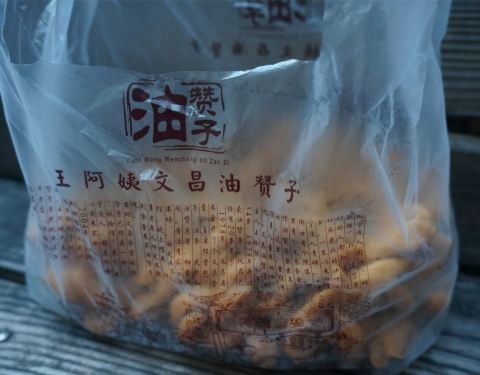 府桥街这条路上有不少的餐饮店,阿拉沿着马路一直走,看到了一家店门口排了挺长的队伍。 乍一看发觉是卖油赞子的,原以为是我们要买的王阿姨油赞子,仔细一看是南塘油赞子,跟攻略里的不是同一家。个么就往“鼓楼里巷”走,发现了一条更长的队伍,没错!就是我们要买的油赞子。 看着队伍长度内心还是有些崩溃的,不过来都来了肯定不想放弃,派了一个小伙伴排队,同时再去附近买别的吃。 油赞子是13元/斤,为了方便收钱每袋按10元称,每人限购40元。阿拉也不贪心,咸味和甜味的各一袋就好了。大约排了30分钟左右,前面当时20多人,要去的小伙伴可以自行算下时间。 油赞子热的时候甜味的比较好吃,冷掉的话更喜欢咸味的,现场买甜味的人更多些。散装用的塑料袋,吃完就稍微打一个结扎一下,三天口感依然是脆脆的,不会软掉呢。