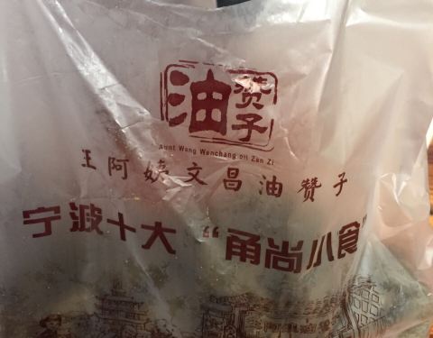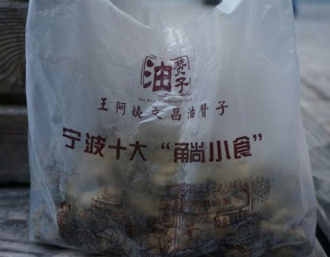宁波特产 第一想到的应该是年糕 我们不走寻常路~搞了点油赞子尝尝 油赞子 其实就是麻花 我一直以为是一根根的那种 南塘老街的油赞子排队老长 所以去了鼓楼的“王阿姨” 排队依旧 不过人少了许多 很大一间房 手工操作台 买卖于一体 新鲜做好的油赞子会由大风扇对着吹冷 只卖咸甜两种口味 10元一袋 12元一斤 各要了一袋 吃口很脆 更偏好甜的油赞子 可比起重庆的陈麻花 还是略逊一筹 少了份酥