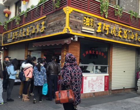 府桥街这条路上有不少的餐饮店,阿拉沿着马路一直走,看到了一家店门口排了挺长的队伍。 乍一看发觉是卖油赞子的,原以为是我们要买的王阿姨油赞子,仔细一看是南塘油赞子,跟攻略里的不是同一家。个么就往“鼓楼...