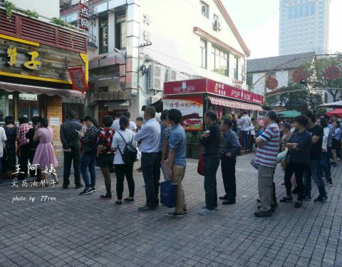 府桥街这条路上有不少的餐饮店,阿拉沿着马路一直走,看到了一家店门口排了挺长的队伍。 乍一看发觉是卖油赞子的,原以为是我们要买的王阿姨油赞子,仔细一看是南塘油赞子,跟攻略里的不是同一家。个么就往“鼓楼...府桥街这条路上有不少的餐饮店,阿拉沿着马路一直走,看到了一家店门口排了挺长的队伍。 乍一看发觉是卖油赞子的,原以为是我们要买的王阿姨油赞子,仔细一看是南塘油赞子,跟攻略里的不是同一家。个么就往“鼓楼里巷”走,发现了一条更长的队伍,没错!就是我们要买的油赞子。 看着队伍长度内心还是有些崩溃的,不过来都来了肯定不想放弃,派了一个小伙伴排队,同时再去附近买别的吃。 油赞子是13元/斤,为了方便收钱每袋按10元称,每人限购40元。阿拉也不贪心,咸味和甜味的各一袋就好了。大约排了30分钟左右,前面当时20多人,要去的小伙伴可以自行算下时间。 油赞子热的时候甜味的比较好吃,冷掉的话更喜欢咸味的,现场买甜味的人更多些。散装用的塑料袋,吃完就稍微打一个结扎一下,三天口感依然是脆脆的,不会软掉呢。