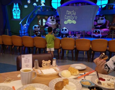 - 熊猫餐厅是野生动物世界里面的热门餐厅 ,带小孩子来的很多都要给孩子买一份熊猫套餐,里面可以坐在...