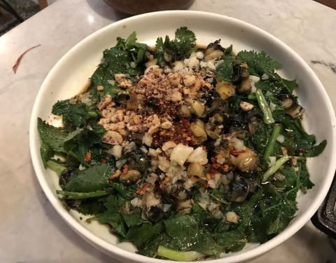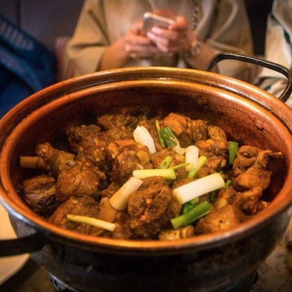在这边,我们点了三道菜,一个招牌黑山羊,一个招牌黄焖鸡,还有一个新鲜螺肉,良心推荐黑山羊,价位略高98元小份,只是味道十分赞,肥而不腻,上的容器没有炖过的痕迹,说明这个黑山羊不是刚炖好的,但是仍然不影响我对它的好感,很可口,可想而知刚出锅的,黄焖鸡也比我吃过的其余的好吃の多,鸡和用料本身都比较讲究,咸淡适中,和米饭搅拌非常棒的配搭。螺肉别有一番滋味,我感觉挺清新,配上薄荷叶,给螺肉提味几分,这个店的环境不错,很小资,很舒适,推荐。