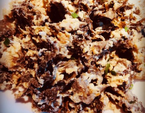 ...融合在一起放进嘴里,汁水混着豆腐的香味,豆腐松软而有弹性,汁水鲜味十足,吃了第一口绝对停不下来