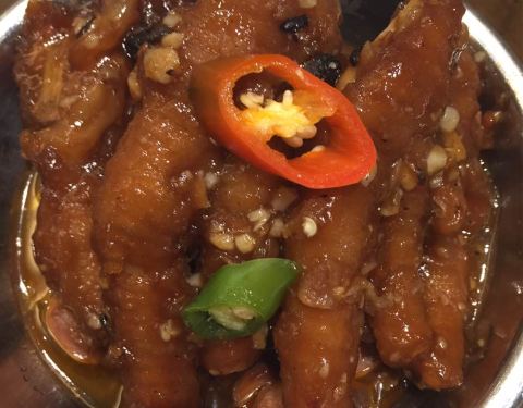 这家店在中原万达广场三楼,店面挺大的,环境也很不错,有三黄鸡焖锅、变态辣牛蛙、黄记煌焖鸡腿肉、三汁焖牛肉粒等小吃,味道很不错