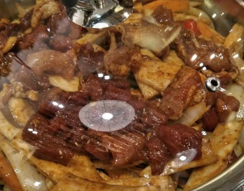 这次吃的菜感觉有些少,两个星期前八个人花了三百多,这次四个人花了快250,希望肉量多起来