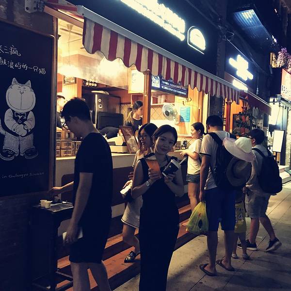 我们去看夜景找小吃吧,从旅店出来,去鼓浪屿吃一些知名的小吃,酒店离商业街隔着一座大山,要走隧道才能通过。隧道很长,曾主任只剩下一张背影能看了这拍出了我1米8的实际身高穿过隧道就到了商业街了,从住宿片区的宁静一下子进入了繁华的街道,我们到商业街的时候都已经快9点了,每家店还是络绎不绝。这是我们到鼓浪屿驻足的第一间店感觉一路上都是什么百年老店,你只管看着喜欢就进去吃就好了这鱼丸有一种你说不出的特别的味道张三疯奶茶店,人很多,排队的也很多,除了饮品不好喝,其他都还不错。赵小姐的店,主要是卖各种酥的,不过进去一看,发现卖周边产品已经超过了主营业务了,例如盆盆罐罐啦,各种手办啦。各种出名的店都在岛上有无数家分店本来打算在各个店都买点手信的,结果进了这家店,一个店员热心的推销下,我们所有的东西都在这里面买了这里的海鲜出奇的便宜,便宜到你未必敢吃10个生蚝10块钱,我们还是尝试了一下,确实也还不错曾主任的少女情怀曾主任童心未泯这家肠粉店是唯一一家没有开分店的老店了就刚刚那肠粉,还挺好吃的。这个点数大家都开始返程了,人也开始慢慢减少了晚上我们来了一个土土的酒吧喝了这么一点,我一回去就呼呼大睡了可能一天的行程太累了,所以没有怎么细心的品味夜间的鼓浪屿,少了一份原始的气息,商业氛围有点过浓,加上各种旅行团,还有问你要不要吃海鲜的中介,莫名的对这些东西有点戒惕。