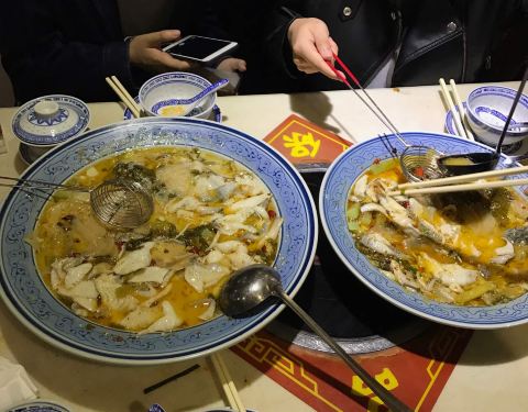 酸菜鱼,香锅和火锅的味道都是让人忍不住要回头的!还有很入味的地道川味凉菜!要不怎么会人这么多呢?从傍晚6点开始,一直到9点,外面等候的人还是络绎不绝,让饥肠辘辘的我只好选择了外卖!菜的份量比较足,两个人...酸菜鱼,香锅和火锅的味道都是让人忍不住要回头的!还有很入味的地道川味凉菜!要不怎么会人这么多呢?从傍晚6点开始,一直到9点,外面等候的人还是络绎不绝,让饥肠辘辘的我只好选择了外卖!菜的份量比较足,两个人点一份锅加2个凉菜就足够了!餐厅考虑到等候的人很多,为大家准备了小游戏,做得好的可以换凉菜哟!