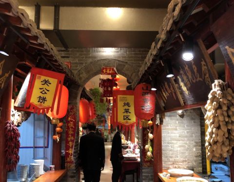 太原的连锁餐饮店,位于山西大学附近,这个店主要展示一些与古代科举有关的民间收藏品,用餐中还有面食表演节目,面食做的很好,种类也多。