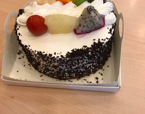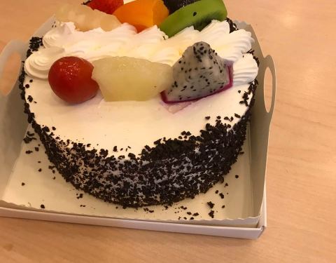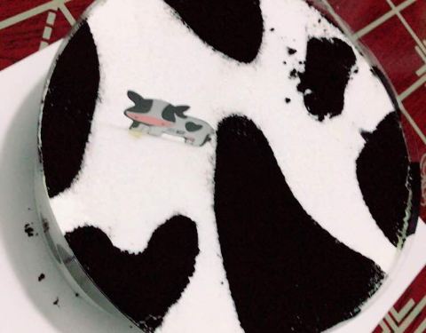 姐姐她们来重庆接我毕业,顺便过生日,本来想订芒果创想曲乳脂蛋糕,但是不知道要提前一天预定。所以就去店里买了一个奶牛慕斯蛋糕。味道挺好吃的