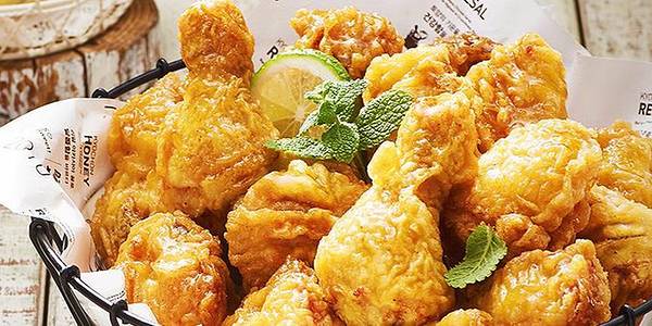 李敏镐代言的一家名气炸鸡店,常常被列为来韩国必吃的炸鸡店之一。推荐该店的酱油炸鸡以及调料炸鸡,与普通原味炸鸡不同,酱油炸鸡消解了原味炸鸡的油腻感,并带入微微酱油自身的鲜甜味,闻着味道就让人垂涎。