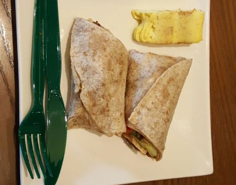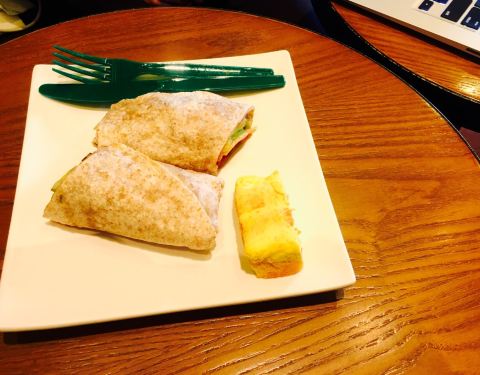 莱山区佳世客的星巴克咖啡,很久不来了,今天又过来,出了新品的高点,北京烤鸭肉卷,烤鸭味道挺正宗,中西合璧的做法,夹杂着蔬菜和沙拉酱,不油腻,加热的温度也正好,由于我来的很早,还赠送了一块芝士蛋糕,十分好评。