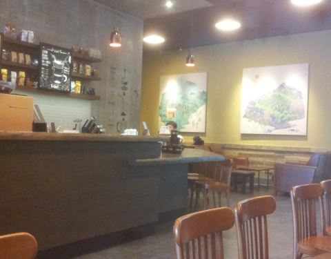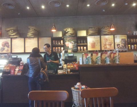 莱山区这边新世界百货的星巴克也是非常不错的,营业时间长,有WIFI,有一些大桌子供学生学习,我们去时,就看见韩国学生在那儿埋头学习,奋笔疾书。