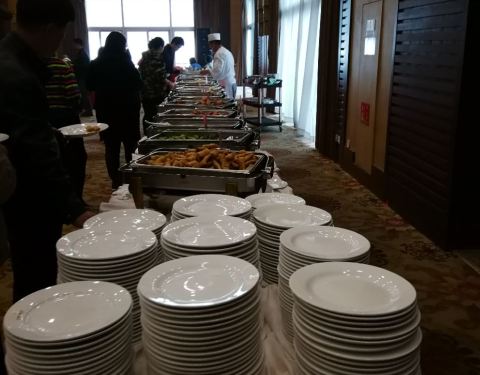 在稻香湖景酒店住,早餐在东方苑吃的自助餐。品种相当多,鸡蛋就有煎蛋、煮蛋、茶叶蛋和蒸蛋。但感觉还是不够接地气,面包又有好多种,可是没有玉米、红薯、山药等粗粮,馒头、花卷也时常供应不足(用各种包子代替)。