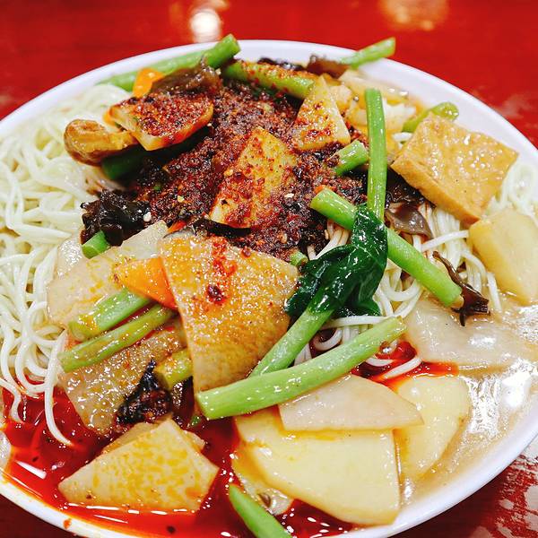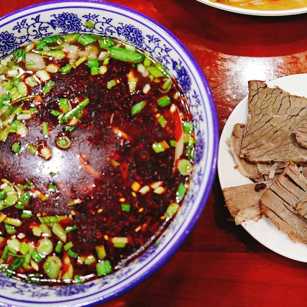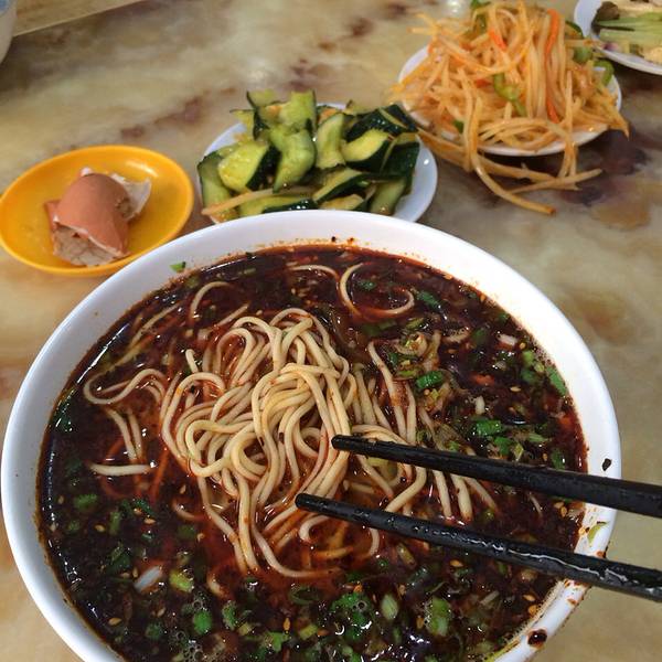 我们点了【招牌牛肉面】+【凉面】,果然,随便选择一家牛肉面都比 天津 的 兰州 拉面好吃100倍 #招牌牛肉面 15元一份 我们要的【二细】的宽度,筋道十足,吸溜起来,一个字“爽”,让我一下子觉得好吃的是那一口汤,那叫一个香,独特的清真风味+醇厚的牛肉香,招牌牛肉面是有一小碟牛肉的,切的有点厚,口感略差,但是咸香味美,很棒。#凉面8元一份 一般,不做评价。Tips: 注意在这家店不要拍到别人,尊重当地的风俗习惯。