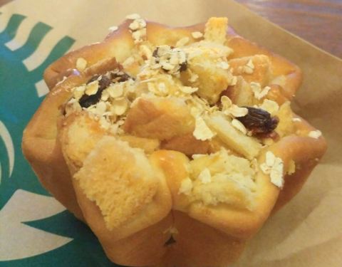 【燕麦焦糖布丁】十二元~ 蛋糕坯子烤的酥硬的口感,紧实,上面撒着酥脆的面包块和燕麦片!顾客非常多