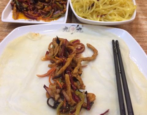 服务也非常好,第一次去,点了鱼香肉丝和土豆丝,外加4张春饼,这里就按对算,就是两对,卷饼,味道好极了