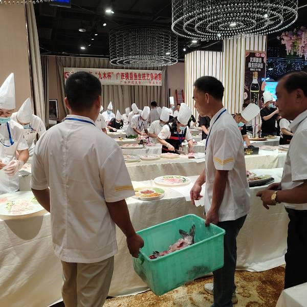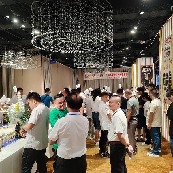 7月17日,30位大厨参加了2025“九木杯”广西横县鱼生技艺争霸赛,做出了摆盘精美的横县鱼生参赛,广西烹协鱼生专业委员会主席余富、常务副主席梁尚海、韦亮、壮乡私厨余树恒等评委对参赛菜品现场评判、打分。