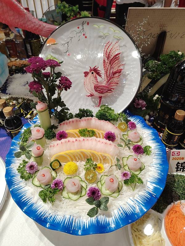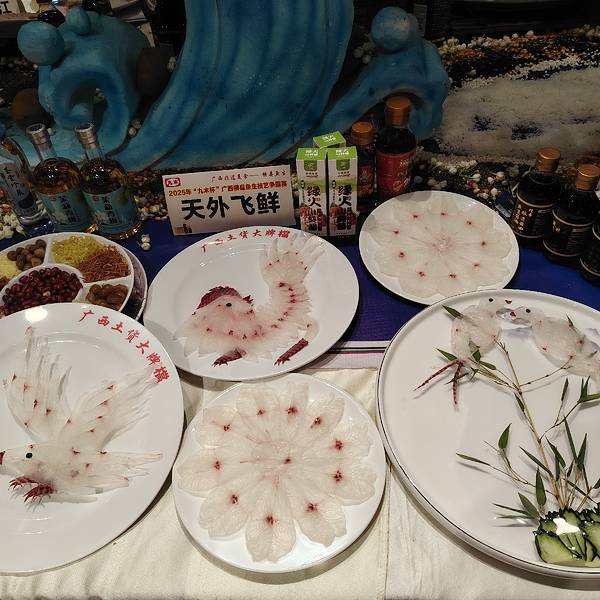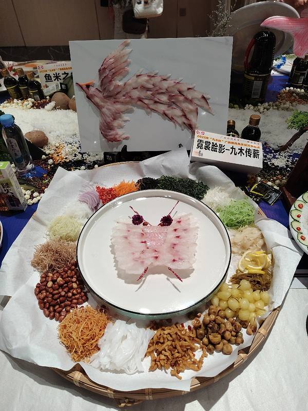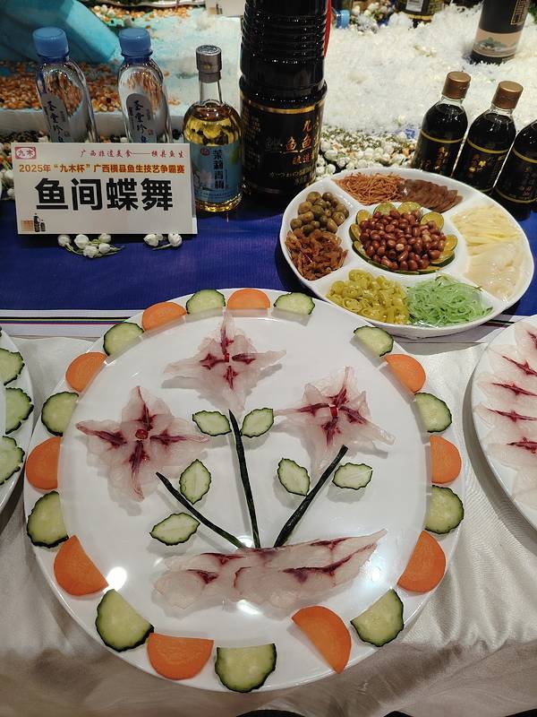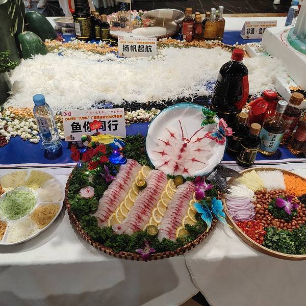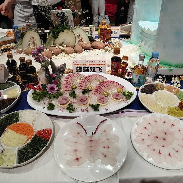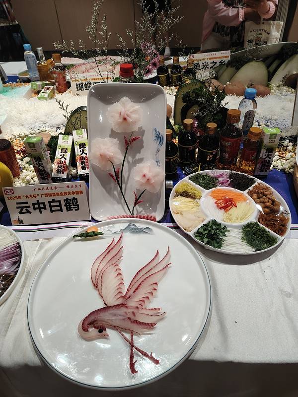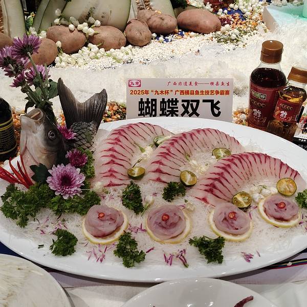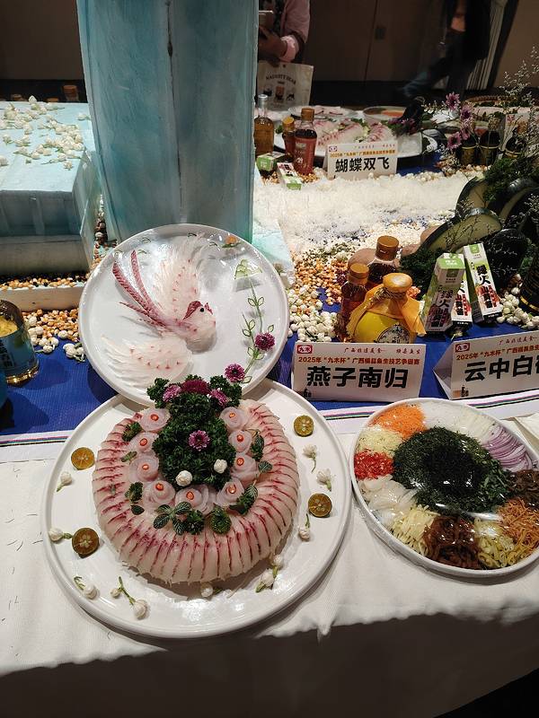 横县鱼生竟然可以这么漂亮,简直就是艺术品。 这是2025广西横县鱼生争霸赛中的参赛作品,参赛厨师展现刀工和智慧,把参赛的横县鱼生摆出各种造型,并取了好听的名字。
