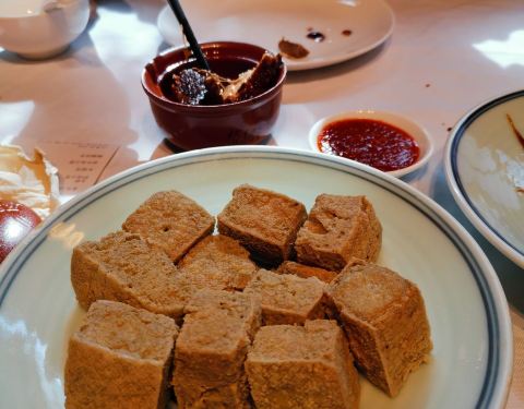位置就在河坊街,这么好的位置竟然没人,可想而知菜品咋样了……东坡肉用山东话说“很柴”,也没味,感觉很腻;臭豆腐吃不了,上头;糖醋排骨还可以,后来会觉得腻;小笼包尚可吧…总之这顿吃的感觉挺一般。客人那么少,店员都在那拉呱,我们水都没有了也不知道给倒水,唉