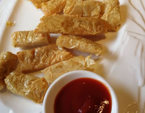 店的位置很好找,在南宋御街附近,逛完直接可以来这边用餐,点了几样菜。响脆就是炸油豆皮卷,沾番茄酱吃,稍微有点腻,但是做小零食还是不错的。猫耳朵好小一碗稍微有些贵,不过是味道还可以。定胜糕嘛,一般般...