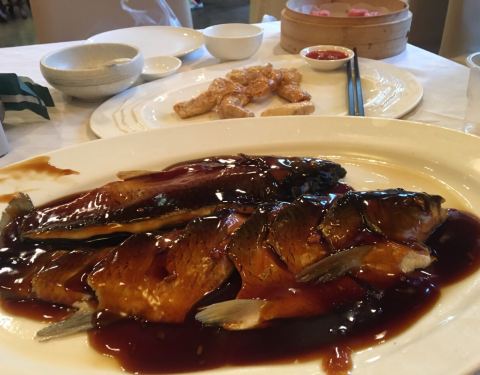 对老年人来说,必点这两样尝尝。惊艳的是素鸭和西湖酥藕,两样前菜味道正好。门面不大但里面餐桌较多
