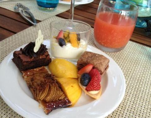 我和朋友家人去了普吉岛吃的自助午餐,位于特瑞萨度假村。这里的交通便利,这家餐厅装修的很不错,并且有着不错的海鲜,还有着非常棒的服务,如果让我一个局外人推荐泰国的米其林餐厅的话,那么我觉得这家餐厅的排名在我心目中肯定会很高的。攻略推荐那里是必去的,不得不说这次的体验还是很不错的,不仅服务很赞,而且自助餐菜系很全的,蔬菜、海鲜都很新鲜,甜食也是自助的,松饼做的还是不错的,都是当时新鲜烹饪的,所以口感新鲜度都是很棒的。因为去过世界各地很多的餐馆,这是迄今为止我经历过餐厅中算是最好的之一。真的不容错过的哦。但是对我来说我最喜欢的餐点还是特大号对虾,肉质鲜嫩,又很有嚼劲,而且配着喜马拉雅盐一起端上来,让我顿时爱上了这种新鲜海鲜与粉盐之间的这种奇妙的搭配。 这些菜都是配着香槟酒一起吃的的,真的是好享受好享受!~~我敢保证这个餐厅绝对是岛上质量最好的!而且价格也划算,总体来说超级棒!人均也才400株。