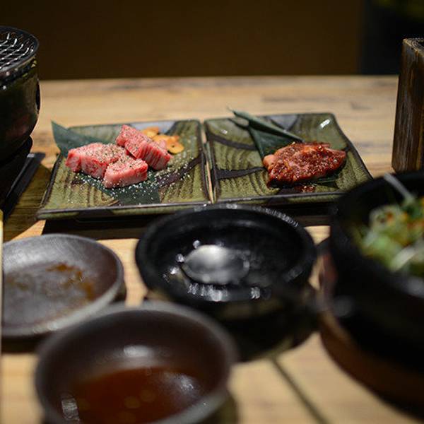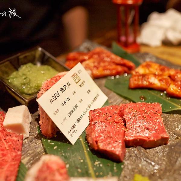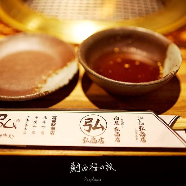 Yelp介绍的烤肉馆子叫做弘,全称: 京の焼肉処 弘(先斗町店)。跟着地图走过来的时候我们还在说,别必须要预约才能吃,就歇了。结果进来之后果然是问有没有预约,回答没有的时候,好在并没有赶我们走,而是让我们等位。等位那没问题啊,来这吃好几天了净排队等位了,这说明他家真心好吃!我们前面还有一到两桌,不过我们也不打算再出去了,就在门口等会儿好了。结果我们这个决定做得别提多对了!就在我们等了十分钟之后,又来了几个人,结果人家已经不接待了,感情我们是排队的最后一桌!不得不说,在吃上面,没人比我们的RP更好了!(后来想了想,可能是因为我们到的比较晚,都九点多了,很多客人都翻台了才有的吃,据说如果提前预约是可以吃到更多限量版的好牛肉的。) 在等待了二十分钟之后,我们就被服务员带到了楼上,跟甜品店一样,饿得半死的我这回非常不称职,光顾着拍吃的了,完全忘记了拍摄店里的环境。。。。大家只能凑合看餐桌了。。。由于几款特别限量的牛肉已经售罄,我们点了目前能点到的,最贵最全的牛肉套餐,来了不能错过啊! 每一道牛肉,都需要有服务员小哥指导来烤熟,因为它们每一块基本都需要不同的时间才能烤到最佳状态,具体的时间我已经不太记得了。最先上来的这一盘,是油脂相对最多的部位,估计也是为了让它给烤肉网多刷些油。先来看看这最棒的雪花和牛吧!这批油脂多的,烤出来是这个样子的,油亮鲜香,嫩到不行!!随着牛肉上来的还有一些小菜,各种拌的牛内脏,也是非常好吃的,可惜我忙于烤肉,等我吃到她们给我留的那些的时候,已经不适合拍照了。。。 再来是一大盘!这里是牛的各种部位,还配着辣白菜,并且还有一碟青色的酱料,我吃出来基本上是青芥末再加上葱蒜麻油之类的调和而成。盘子中间还插着一张卡片,上面有制作者的名字、联系电话等。另外因为这批肉里有完全没有油脂的部位,所以盘子里还配了一块油脂,专门刷网子用的。真可惜本人完全没有办法知道这些 都是牛的什么部位,只知道都很好吃,都很嫩!仔细看,肉块上还撒了细细的香料。啥也不说了,赶紧烤起来!油脂少的肉烤出来依然很嫩很香,但口感没有那么好,不过配上青酱再加上辣白菜,那简直是香爆了!很抱歉本人由于需要烤肉和吃肉~,中间很多照片就木有拍啦!最后还有一整块瘦肉,是由服务员小哥亲自操刀烤制的,可能因为比较厚,火候难以把握的缘故吧,小哥负责帮我们烤完后再帮忙切片,这个刀可是够讲究的。看看,这位小哥怎么有点像那个张亮MT大厨呢?!