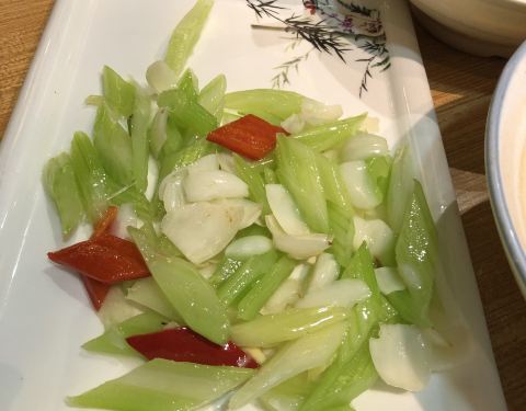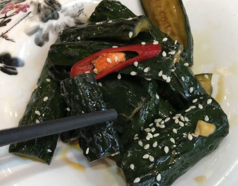 和朋友参观苏州博物馆,出来想吃点继续逛山塘街去,晃到这里,一眼就喜欢上了这家店,食而知其味——姑苏家宴,一看名字就是正宗苏帮菜,虽然不是饭点(不到四点)但已有几桌坐等了,说是厨师正吃饭要稍等会,肚子不饿,就点了点素菜和一汤,酱黄瓜不太好吃,偏甜不脆,土豆丝倒正正好吃,值得下次再来,性价比实在是高。