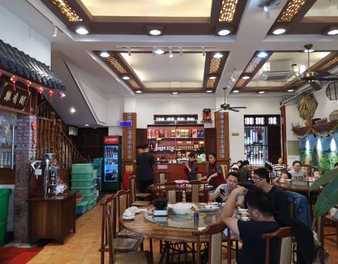 两个人用餐就点了三个菜,这里的鸡味道不错,入口滑爽,鸡杂的做法加了酸的笋吃了不习惯。 【口味】鸡打9分,鸡杂50分,个人口味不喜欢 【环境】很多当地人用餐,气氛很热闹,稍吵 【服务】马马虎虎