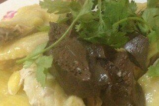 软嫩的白切鸡,配有鸡内脏,口感特色十足。