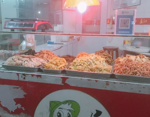 屈记鸭颈 刚好在附近吃沙茶面,搜索附近美食发现这家店,顺路过来试一下。 因为刚吃饱,就只试了招牌的干鸭颈。 一个6元,分为辣和不辣的。味道挺好的。 越吃越香。不过有点干,毕竟这个风味就是如此。 辣的味道还挺辣的,肉肉比不辣的要柴一些。可能烘烤的时间更久。 菜品感觉挺丰富的,素菜荤菜种类很多。 因为刚吃饱就没尝试了,有机会再来打卡。