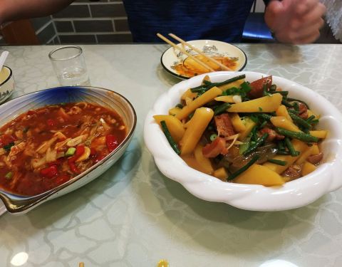 第一次来瓦房店中午和同事一起解决午餐后返回大连。在网上搜索了看点评比较不错的东北菜和大连当地菜。开着导航从123公共服务中心世纪广场找到私家厨房。特别不起眼的居民楼一楼改的店面,人气特别旺,中午十一点就没有座位了啊! 一楼很小的前台旁边一侧是厨房,一侧是只有三张桌的小屋子。从大连来这里觉得菜品价格很是亲民啊俩人点了一份虾仁辣白菜,良心推荐啊28元竟然有8个特别大的大虾仁就跟现在外面的新鲜大虾差不多大,而且调口我也很喜欢。 我这个肉食性动物,必须无法离开红烧肉啊长豆角土豆红烧肉,土豆入口绵软,汤汁是浓浓的肉汤,长豆角就是豇豆,我和同事两个人这一大钵子连也就只吃的了三分之一。 芸豆包子 我强烈推荐哈 我和同事放着菜不吃也把这六个包子搞定了。