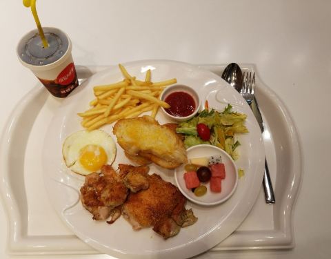 肯德基在马来西亚相当普遍,为了市场,马来西亚境内所有肯德基销售的都是清真食材。点了原味套餐,优惠价不到二十人民币感觉有点干了,还可以接受,价格比国内便宜。