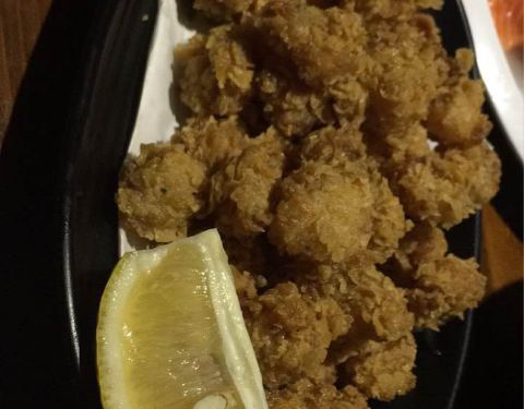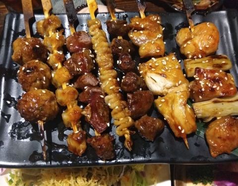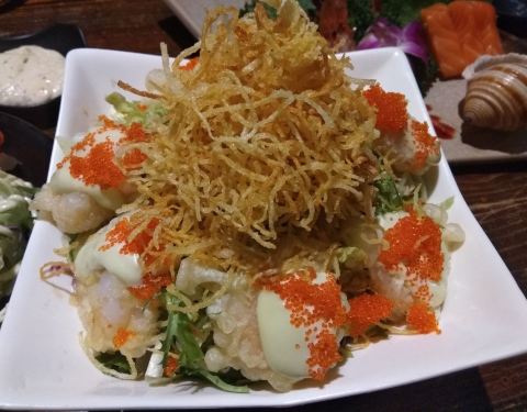 奥城有两家山上下,一个居酒屋,一个烤肉店,一不小心就走错了,我们就在居酒屋吃的。 三点拼盘:甜虾,三文鱼,北极贝,经典的刺身拼盘,每种都爱吃[馋] 芥末鸡肝:淡淡的芥末味搭配鸡肝细腻的口感竟如此相配。 芥末虾球沙拉:做沙拉的虾球很大颗,特别喜欢上面点缀的炸土豆条。 豚骨拉面:溏心蛋和拉面都很好吃,猪肉肥瘦比例刚刚好。 串烧拼盘:各种鸡肉吃些很爽,想吃那个部位6都有,鸡心,鸡胗,鸡肉丸,鸡皮,鸡脆骨等等~ 甜品拼盘:最爱布朗尼,其他的也很好吃~ 胶原蛋白三文鱼锅:很少吃煮熟的的三文鱼,口感没有生吃的鲜美,可营养汤的味道也不错。 抹茶红豆:浓浓的抹茶里面还有甜甜的红豆,真材实料味道好~
