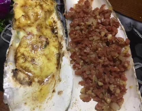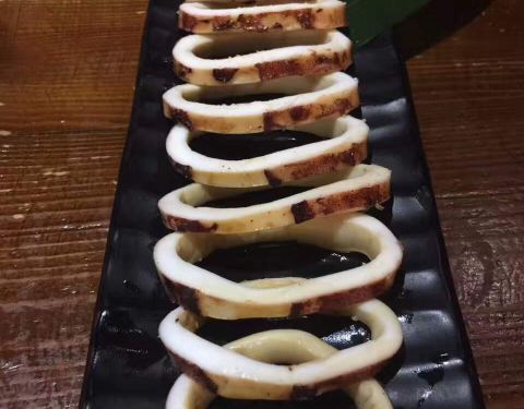 - 三文鱼,北极贝,经典的刺身拼盘,每种都爱吃[馋] 芥末鸡肝:淡淡的芥末味搭配鸡肝细腻的口感竟如此相配