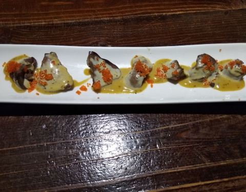 三文鱼,北极贝,经典的刺身拼盘,每种都爱吃[馋] 芥末鸡肝:淡淡的芥末味搭配鸡肝细腻的口感竟如此相配