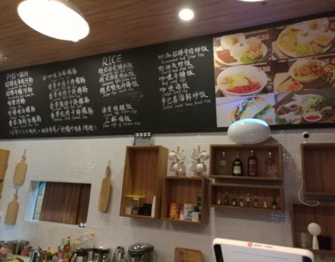 看来对于南商真的不熟,这么多楼,跟着导航还是绕来绕去找不到,猛然回头看到明黄色标志,原来就在这里 跟想象的不太一样,是家很小的店,占据一个拐角,一般的简餐小馆的大小,中间几张大桌,两边都是窄窄的吧台...
