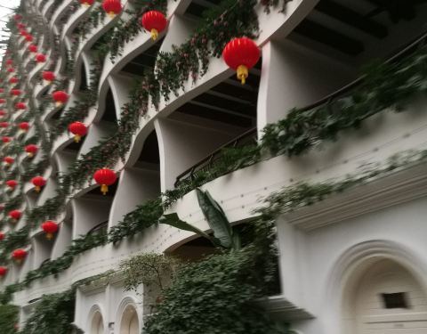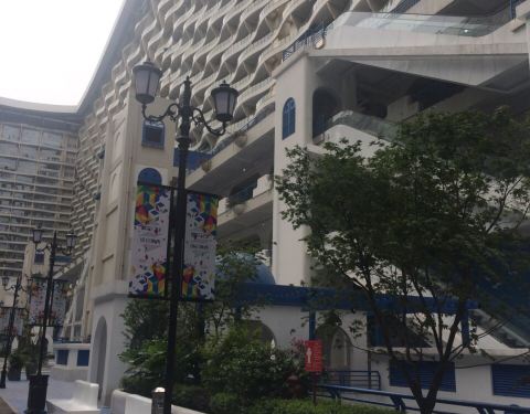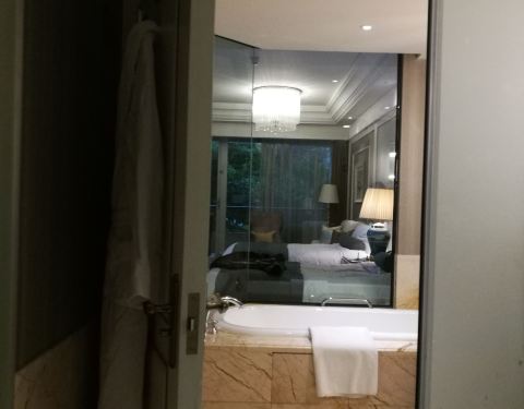 在亚洲最大的环球中心里藏着一个洲际酒店,从大堂到住宿的区域还要坐电瓶摆渡车的酒店还真是少见,自助餐厅就在游泳池边上感觉真是太棒了!!