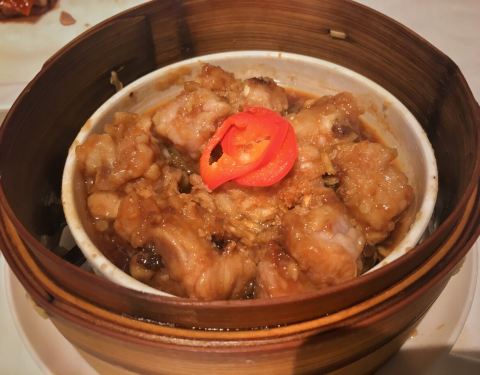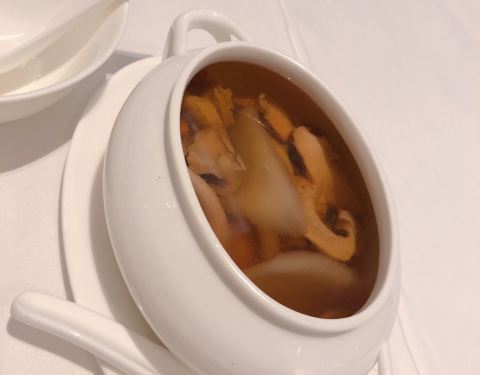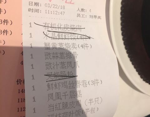 环境很好,整洁安静!服务精致细心!点了虾饺 风爪 脆皮鸡 蟹盖 例汤 豆苗;苹果白木耳猪肉汤最合意!鸡烤的很漂亮脆、亮、嫩,但对我们略咸了点;虾饺美味弹牙;风爪酥烂鲜美。总体食材新鲜美味,烹饪技巧出众,再淡一点就完美了!