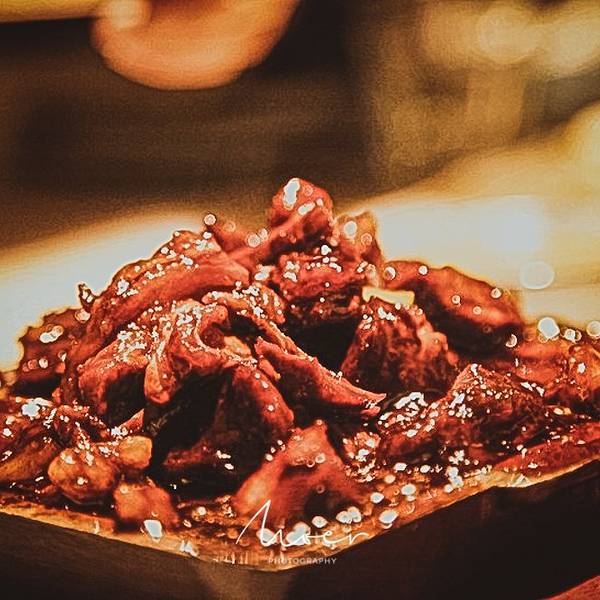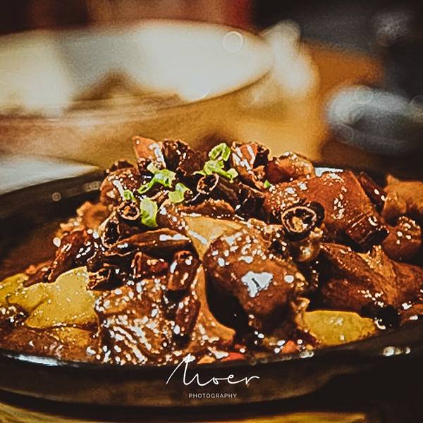 【醋烧牛肉】这是我第一次吃纯用醋烧的牛肉,虽然自己炖肉也会放醋来软化口感 ,不过这种醋的红烧真真是第一次吃,这红艳艳的色泽,呲嚓作响的铁板声音,从端上来的时候,就备受五官的刺激 ,听其声,嗅其香,尝其味,看其色,压轴推荐!一定要尝尝。