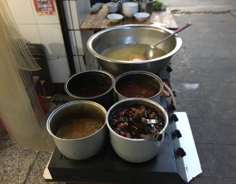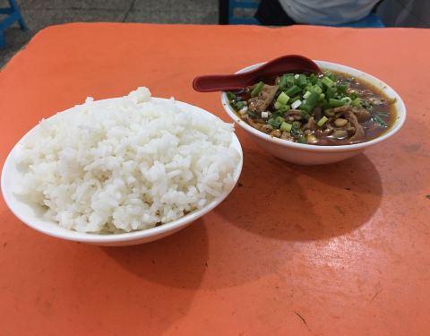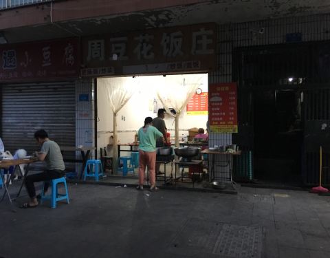 周豆花环境不怎么好,但是味道没得话说,主营烧菜,炒菜,豆花等,有免费的米汤喝。肥肠压得很耙很入味,软糯香耙,十分的好吃。