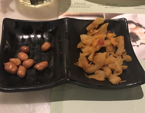 晚餐在朗豪坊的南小馆吃的,3层我记得,环境味道都不错,性价比也挺高,总吃香港中西合璧的菜肴已经开始怀念生煎、葱油拌面这些平常爱吃的味道了。腌萝卜花生,来两盘。