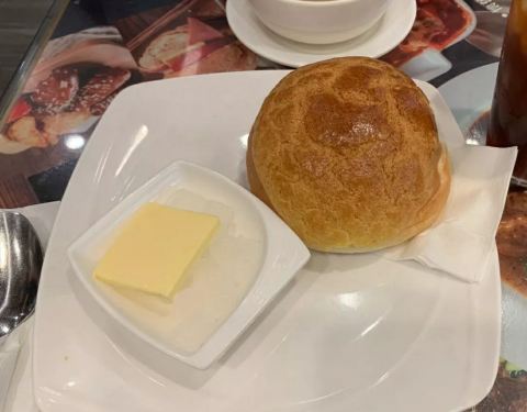 九龙餐室最为著名的是菠萝油,而且是特大菠萝油,另外还有大份量的西多士。其实不用进到餐厅里面,在餐厅外的橱窗里就能够买到这些外卖的面包、沙翁,、鸡批、蛋挞、老婆饼,大约都是港币6到7块钱左右。刚好路过...