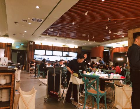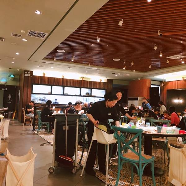 薯条没有新鲜出炉。人巨多,翻台率非常高。中午没有所谓的下班时间,这也许是市中心餐厅的特别之处