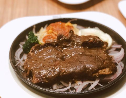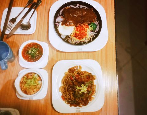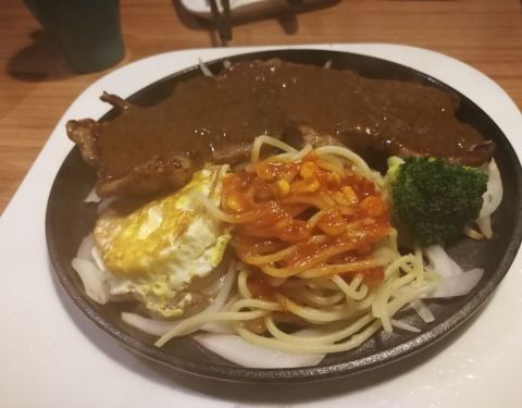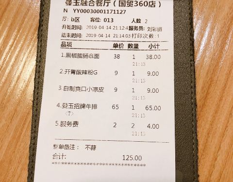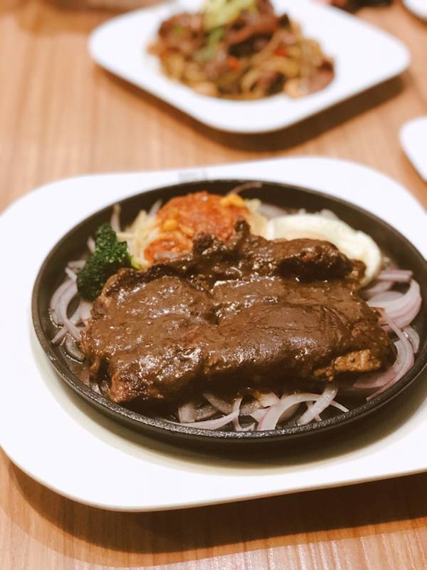 口味7分 环境8分 服务8.5分 郑州众所周知的店了,也不知道吃过n多次了,只要是饭点就必排队。服务也是没话说很是热情仅次于海底捞。今天点的菜是中华传统小吃和西方经典美食的组合。 「曼玉招牌牛扒」6分 一直没吃过他家的牛排就尝了尝。要了7成熟,端上来打开盖子一股浓郁的洋葱味,没有溅油,不像豪客来这种店油喷的很多。可能是我吃牛排少的原因,感觉这个口感很奇怪,肉质有些散,用刀叉一剥肉就开了,吃起来也没有牛肉应该有的紧致感,有点像合成肉得口感。味道中规中矩,黑椒酱有些淡。 「黑椒腊肠意面」8分 很棒,主要是香肠很好吃,吃起来没有肥肉,配上黑椒味简直完美。 「开胃酸辣粉」6分 吃起来没有路边卖的那么油腻,粉也是不含胶的。酸酸辣辣还可以。 「自制爽口小凉皮 」6分 芝麻酱有些浓吃起来略腻。 还送了杯芒果汁,浓度很高,是纯芒果榨的,好喝。