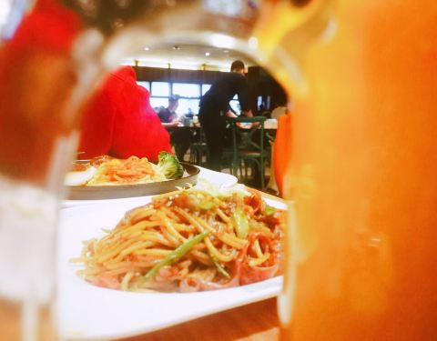 人巨多,翻台率非常高。中午没有所谓的下班时间,这也许是市中心餐厅的特别之处。 酸辣粉是热的,味道比较清淡,但是热的很奇妙啊,一般餐厅里的都是凉的吧。 薯条没有新鲜出炉