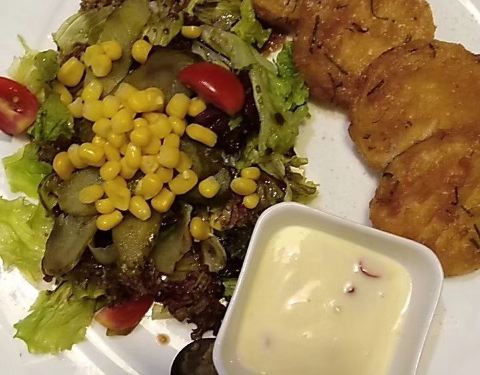 今天点的菜是中华传统小吃和西方经典美食的组合。 还送了杯芒果汁,浓度很高,是纯芒果榨的,好喝