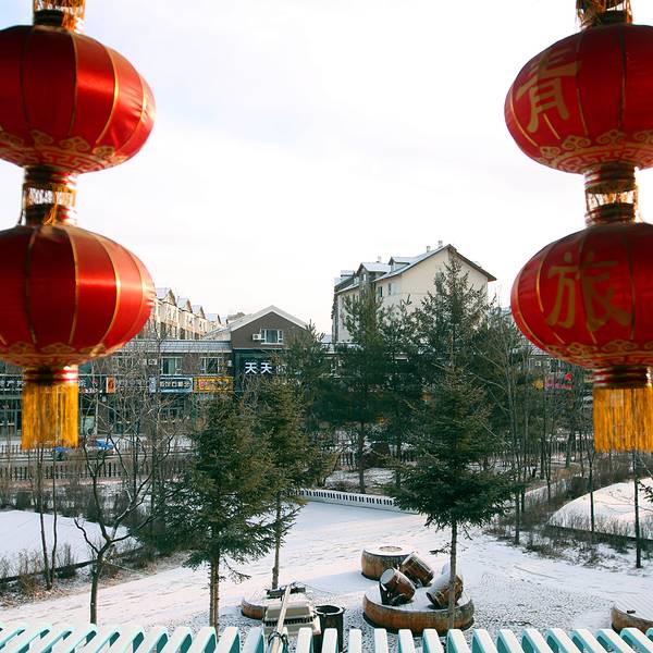 约了车上长白山,所以早起。 这里的太阳比内陆要早出,街上还没有多少人,太阳已升起很高了。晚上下了雪。 踏着沙沙的雪声,去吃早餐。这就是传说中的美人松吧回青旅等车中,幽静的小镇。